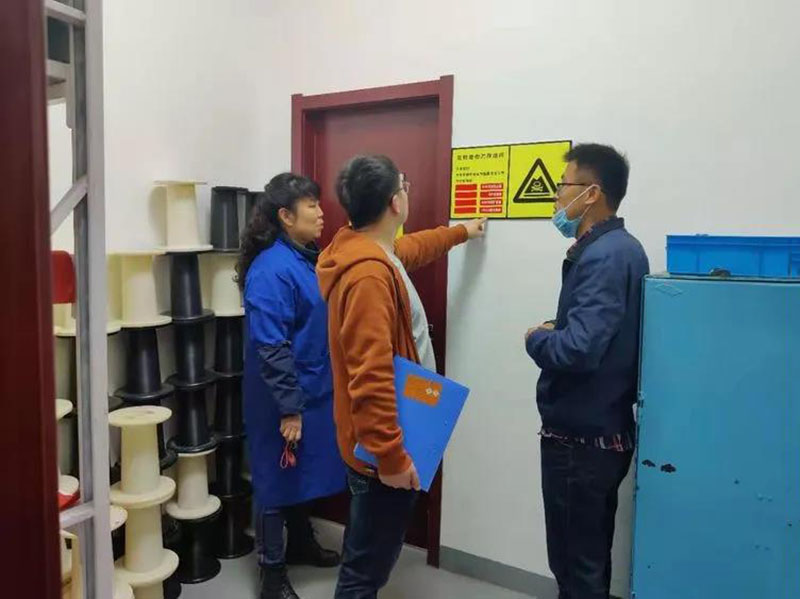 现场检查时企业已完成更换新的危废标志牌,并明确负责人,实行双锁制度,危废台账完整,危废间地面进行防渗处理。在检查企业危废间时,现场对企业进行新《固废法》等相关法律法规的宣传和学习,并发放相关资料。