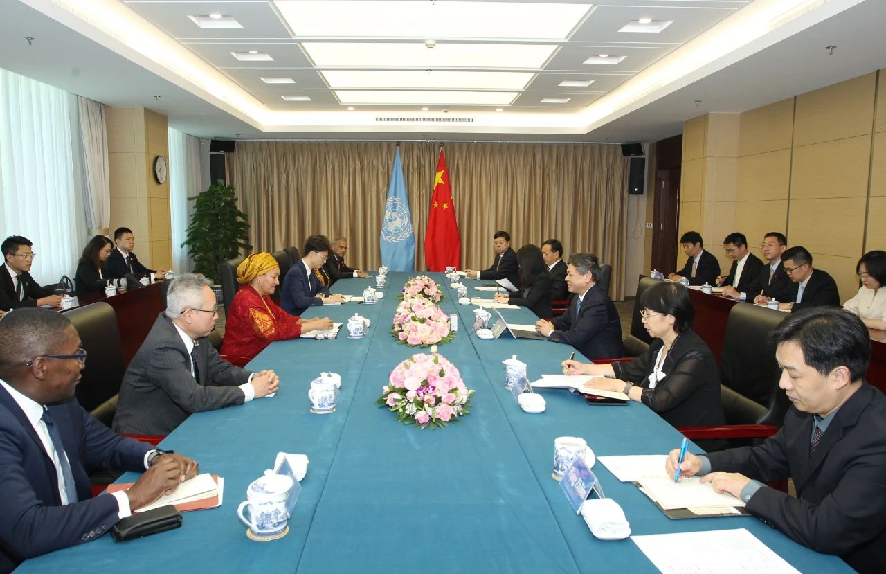 生态环境部部长黄润秋会见联合国常务副秘书长阿明娜