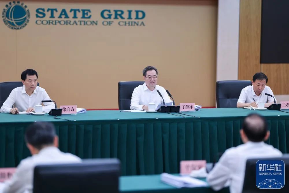 7月15日,中共中央政治局常委、国务院副总理丁薛祥到华能集团有限公司、国家电网有限公司调研并主持召开座谈会,认真学习贯彻习近平总书记重要指示精神,贯彻落实党中央、国务院决策部署,研究进一步做好迎峰度夏能源电力安全保供工作。这是丁薛祥主持召开座谈会。新华社记者 刘彬 摄