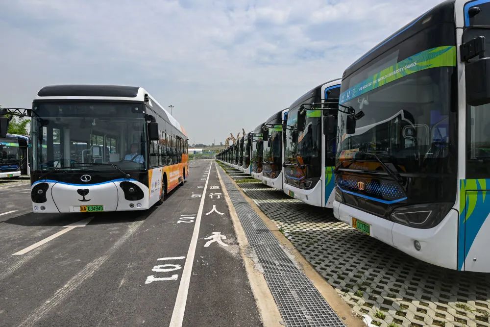 在车辆使用上,本届大运会践行“绿色出行”理念。大运会期间,共有1340辆新能源大巴、1000余辆新能源小型车用于交通服务。大运村到中心城区场馆交通将90%使用新能源车,大运村内部将100%使用新能源摆渡车。