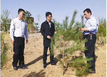 蔡风海(左二)实地调研鹊山湖环湖路绿化情况。 梁晓东摄 河北省内丘县地理位置特殊、生态区位重要,其浅山丘陵区占全县1/3的土地面积,因而这里一直是造林绿化的硬骨头。 面对...
